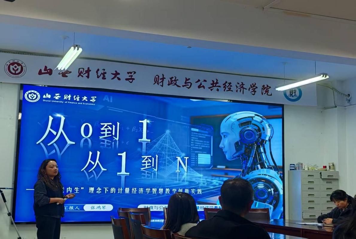 第三板块:团队协作——教研融合,聚力前行。张老师将成绩归功于数量经济学教研室坚实的团队后盾。她介绍,教研室通过长期的“集体备课”机制,统一了教学大纲、课件体系与实操案例,形成了教学合力。更重要的是,团队秉承“以研代教、教研融合”的理念,将学科前沿成果持续转化为教学养分,构建了“本科基础+科研前沿”的赋能平台。这种深度协作确保了参赛作品既有创新高度,又有扎实的学理与实践根基。